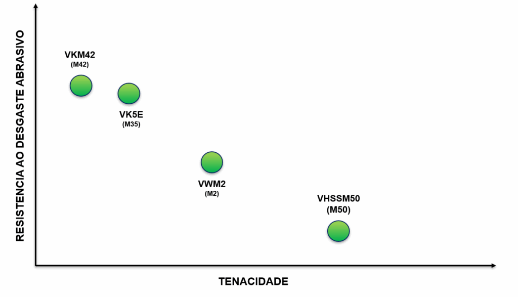 M2 e M42: Contêm molibdênio, tungstênio e cobalto; são amplamente usados em fresas, brocas e outras ferramentas de corte.