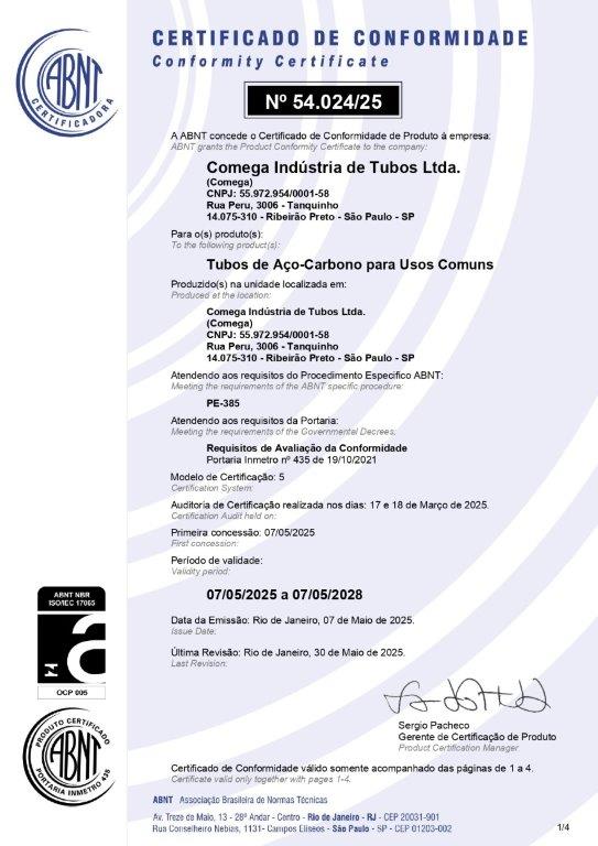 Com tudo isso em pleno andamento, a Comega espera um crescimento significativo, uma vez que tem observado uma demanda crescente de produtos com as normas NBR 5580 e NBR 5590. Inclusive, já tem planos de investimentos desenhados para aumentar a capacidade de produção dos tubos certificados pelas novas normas, caso isso se torne necessário.